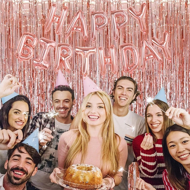 2Pack Party Backdrop Metallic Foil Fringe Tinsel Curtain Adult Kids Birthday Party Wedding Decoration Baby Shower Favor Supplies