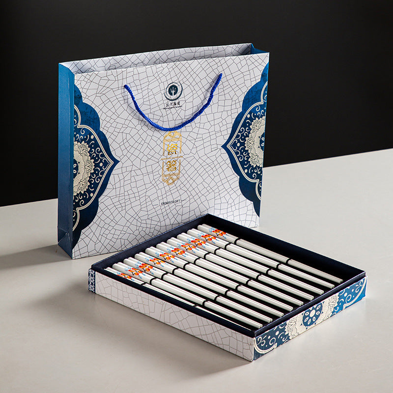 Co-flow Japanese ceramic chopsticks household tableware healthy anti-slip anti-mildew hygienic baffles gift bone chopsticks