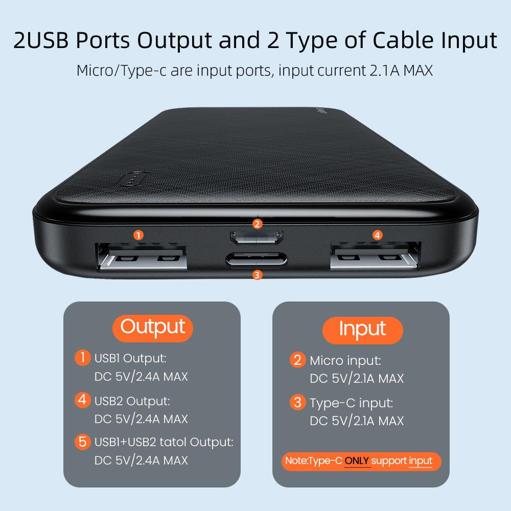 Micro + Type C Input: 5V/2.1A